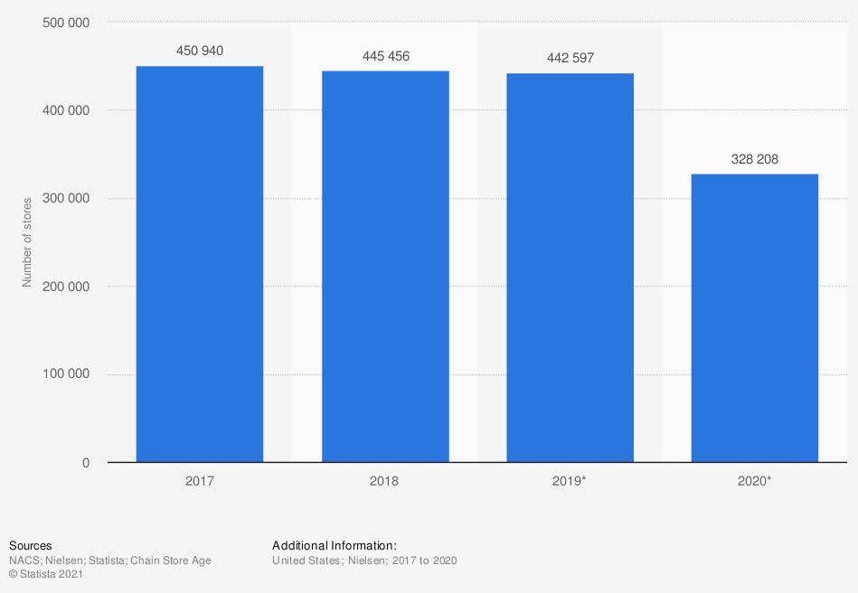 Graphic #1: https://www.statista.com/statistics/1079239/brick-and-mortar-retail-store-count-us/