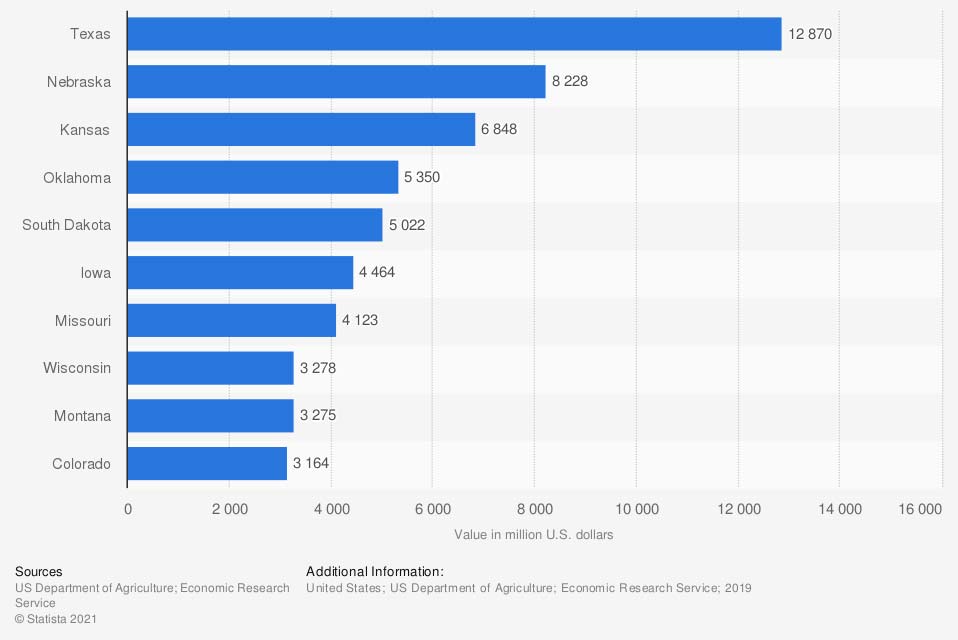 Graphic #2: https://www.statista.com/statistics/194308/top-10-us-states-by-total-value-of-cattle-and-calves/