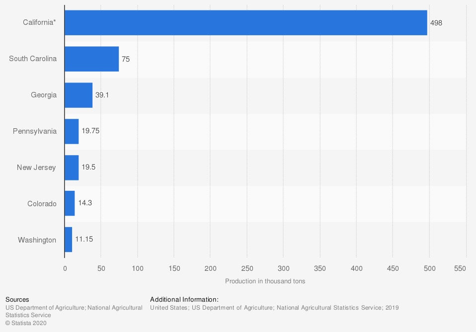 chart - https://www.statista.com/statistics/193929/top-10-peach-producing-us-states/