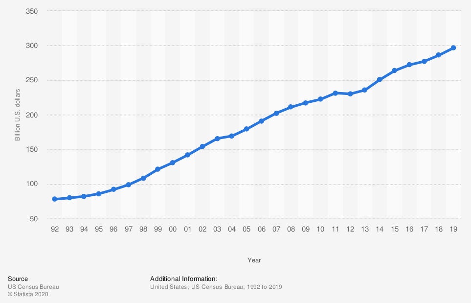Graphic #1: https://www.statista.com/statistics/197635/annual-pharmacies-and-drug-store-sales-in-the-us-since-1992/